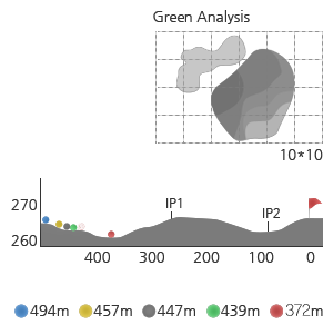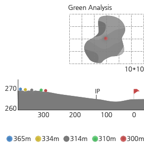 우측 필드를 조심해야 하며 그린은 3개의 Cup Zone으로 구분되며 Cup Zone 내에만 떨어지면 OK!