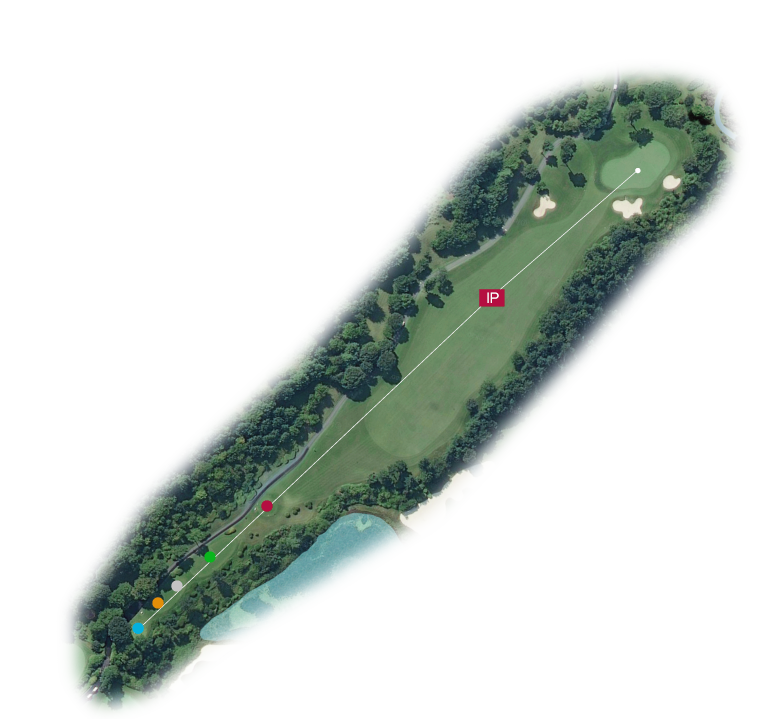 티 앞과 IP Zone 우측에 각각 병행 워터 해저드가 있어 장타자는 IP 좌측의 좁은 F/W(30m)범위 내에