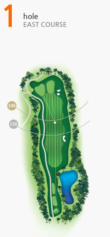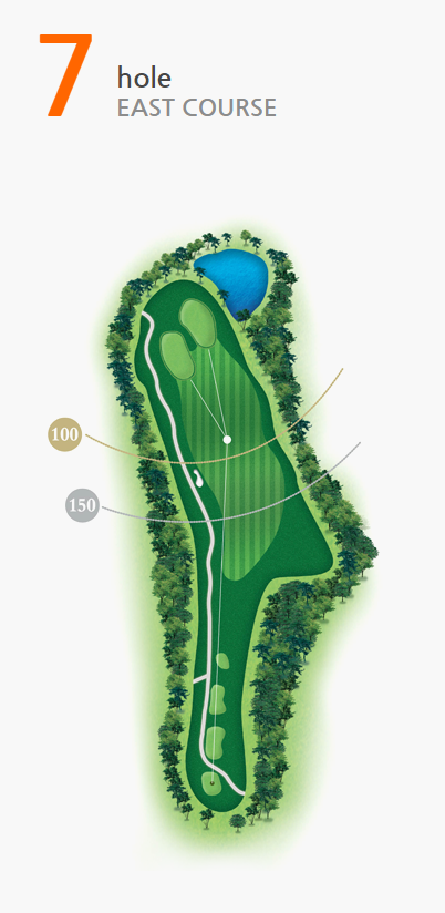 그린우측 연못을 피하는 까다로움이 있어 정확한 거리와 방향성이 요구된다.