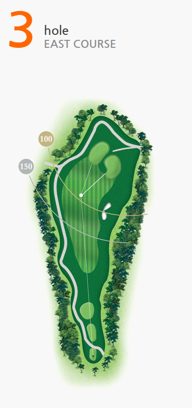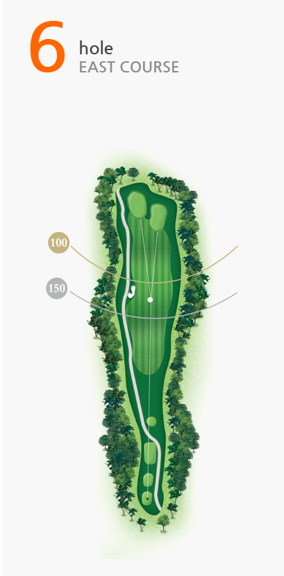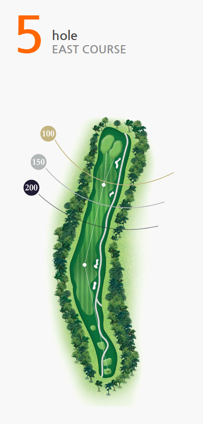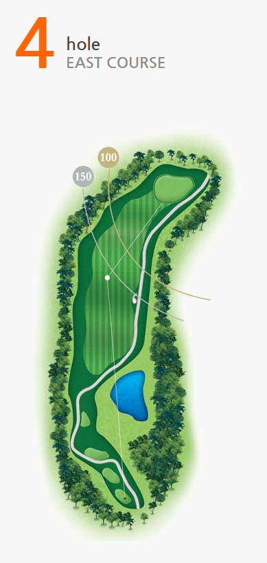 좌측에 기존 수림대가 홀끝까지 펼쳐져 있고 티 우측을 연못이 감싸고 있는 오르막 홀로 10m의 고저차가 있다.