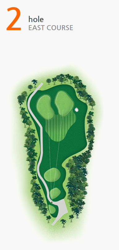 약간 우측으로 굽은 도그렉홀이며 완만하여 길게 펼쳐져 있어 장타를 날리고 싶어진다.벙커 5개가 페어웨이 우측과 그린 앞에 도사리고 있어 위협적으로 보이지만 중앙을 향해 샷을 하면 무난하게 그린을 공략 할 수 있다.